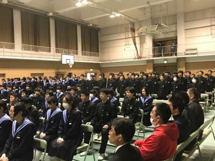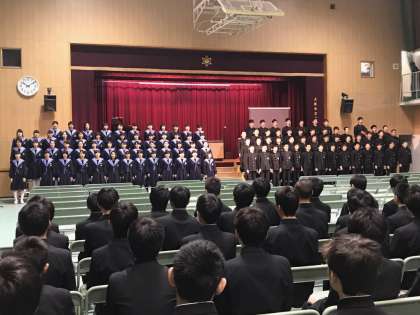 卒業式を明日に控え、本日、予行が行われました。本番の流れを一通り行い、歌は本番通り歌いました。在校生(2年生)の送別の歌も良かったですが、卒業生による旅立ちの歌は圧巻でした。思いを込めた大きな声の迫力ある歌は、聴く者を圧倒し、3年間の気持ちがビンビン伝わってきました。明日はこみ上げてくるものがあり、どんな歌声になるか分かりませんが、保護者の皆様、是非お越しいただき、卒業生の思いをしっかり聴いてあげてください。3年生のみんな、明日の本番も頑張って、素晴らしい卒業式にしよう!