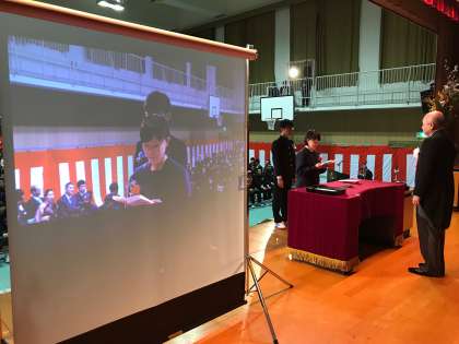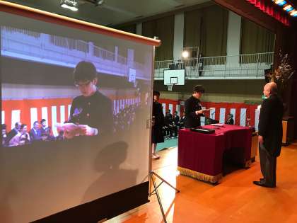 答辞は、卒業生代表の申さん、阪口さんの二人が読み上げてくれました。3年間の気持ちが思いっきり詰まった、また、これまでの成長を感じさせる素晴らしい中身でした。その後の送別の歌では、2年生が先輩への思いを込めて、「大切なもの」を綺麗な歌声で歌ってくれました。