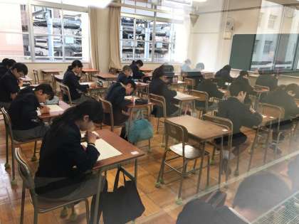 本日、4月から本校に入学予定の新1年生が集まり、事前調査を行いました。始めに簡単な説明や中学校生活の話があり、その後、国語と算数のテストを行いました。みんな、期待と不安が半々のようで、緊張感を持って臨んでいました。次に中学校に来るのは、4月4日の入学式です。中学校の先輩方・教職員も心待ちにしていますので、心配なく元気な姿を見せてくださいね。