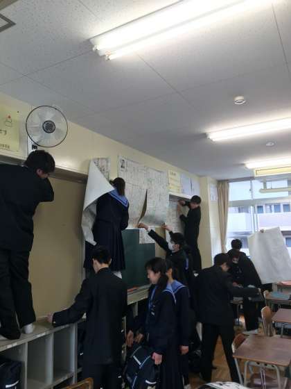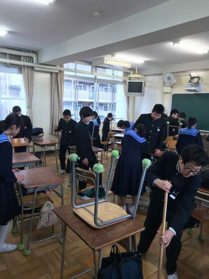 年度末の大清掃を行いました。教室の床の傷つき防止のためにつけてある机・いすのテニスボールのほこり取りをはじめとして、掲示物も取り外しました。