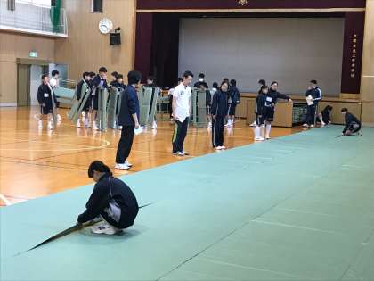 明日の入学式に向けて、今日は新2年生が準備を進めてくれました。会場である体育館はもとより、体育館回り、廊下、階段、トイレに至るまで徹底的に掃除をし、新入生に気持ちよく入学してもらおうと頑張ってくれていました。