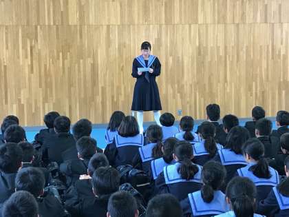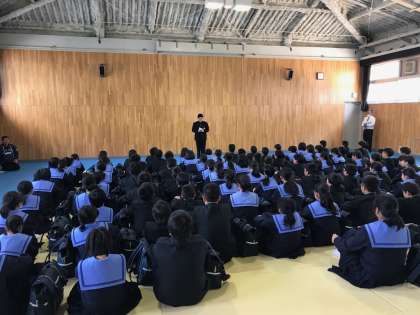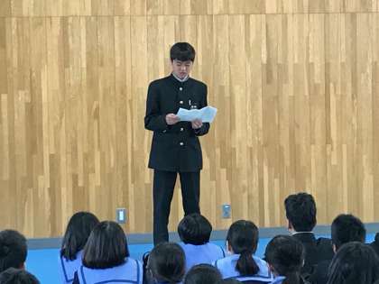 本日、始業式、学級活動の後、1年生に対して部活動紹介がありました。各クラブの代表が、自分の部活動の説明をし、「ぜひ入部を!」と勧誘していました。1年生も全員が興味深そうに真剣に聴いていました。