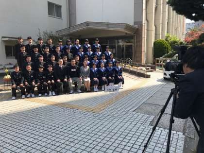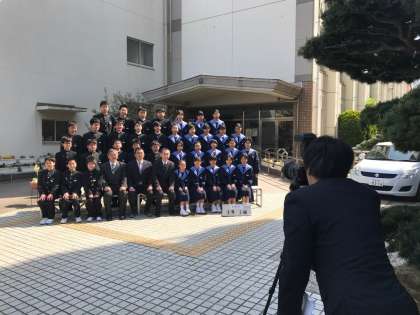 今日は1時間目から各クラスで学級写真を撮りました。1年生は大きめの制服に身を包まれ、写真屋さんの指示に従ってみんな笑顔で写真に写っていました。出来上がりが楽しみですね!