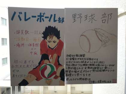 バレーボール部、野球部、合唱部、美術部、サッカー部です。