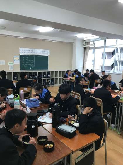 クラスの委員や係りが決まり、班ごとでの活動がスタートしました。昨日の昼食は各クラス班ごとにせず喫食しましたが、今日から班ごとでの喫食です。新しいクラス、新しい班での昼食で緊張するかなと思っていましたが、笑顔で会話している人が多く、とても良かったです。どのクラスも学習や行事に向かって一丸となって頑張れると思った一面でした。
