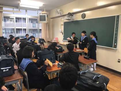 1年生の終学活の様子です。1年生も週番の人が前に出て、学活を進めます。保健委員が前に出て検尿の連絡・説明をやっているクラスもありました。毎時間の反省では、全員がちゃんと授業を受けれたという報告ごとに、みんなで拍手をして喜びを分かち合っていました。6時間とも拍手ができる日をずっと続けていってほしいと思います!