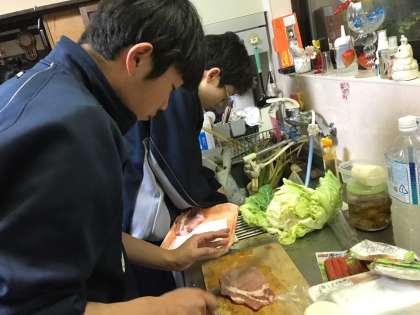 用意してもらった食材を使って、自分たちの力だけでトンカツを作っているところもありました。