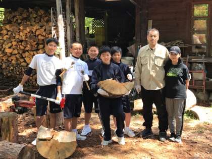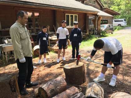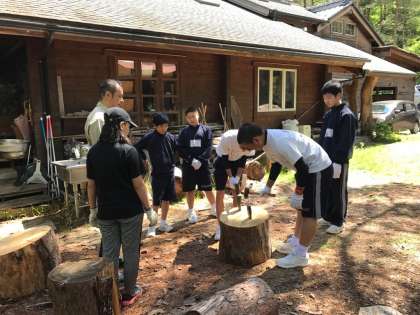 ここも薪割りでしたが、巨大なマキだったので男子も悪戦苦闘。でも、最後は見事に割りました!