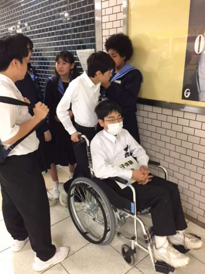 本日は、車椅子体験で実際に街に出て体験を行いました。