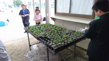 中央区の緑化活動として、先月に種まきをしたマリゴールドが発芽しました。(写真上)