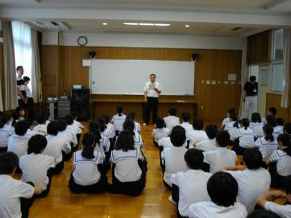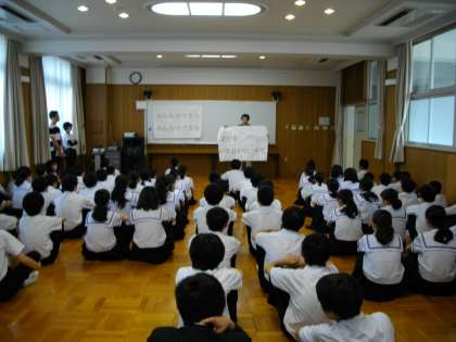 今週の学年集会はごみについてです。まずは技術科の目標である「みんなができる みんなでできる」についてお話をしました。そのあと「学校をきれいにする」ということを、みんなが取り組んで、みんなでごみを分別、掃除をすればとても気持ちよく、過ごしやすい学校が生まれることについてお話をしました。ぜひみんなで過ごしやすい学校を作りましょう。