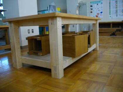 管理作業員の人たちが製作していた技術室の作業机が完成しました。とてもきれいに頑丈に仕上がっているので、安心して製作実習に取り組めます。生徒たちも喜んでいました。管理作業員のみなさん、ありがとうございます。