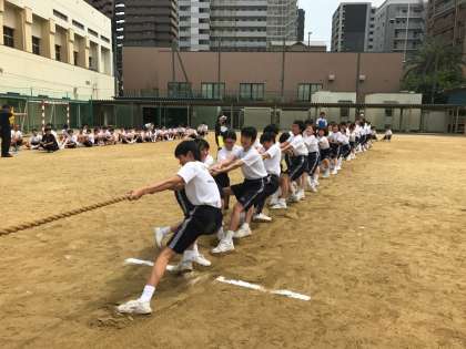 予選リーグの違う団同士の対戦で練習しました。本番さながらの力の入れようで、特に3年生は大きな声とともに全力で頑張っていました。