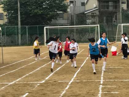 その後は、団対抗リレーの練習をしました。今日はグランド状態が悪く、波打っているところが何ヵ所かあったので全力はやめておこうという形で始めました。