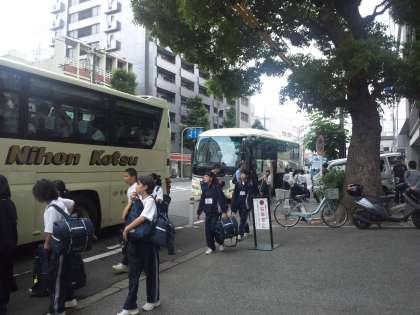 6月12日(木)格技室で出発式を行い、バスに乗車。たくさんの保護者・教職員に見送られて、9時5分に一泊移住に出発しました。曇り空ですが、みんなこれから体験することに期待に胸をふくらませ、元気いっぱいの表情でした。まず、弥生学習館に向かいます。
