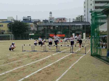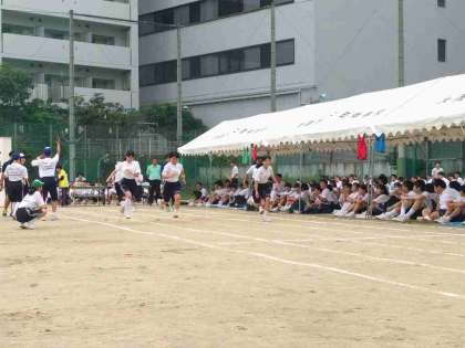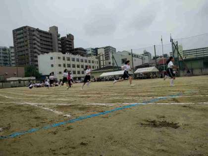 6月8日(金)、お天気が心配された中、予定通り体育大会が行われました。早朝より、係の生徒、職員が集まって最後の整備を行いました。ところが、開会式が始まると同時に雨が降ってきて、最初は雨の中での競技スタートとなりました。