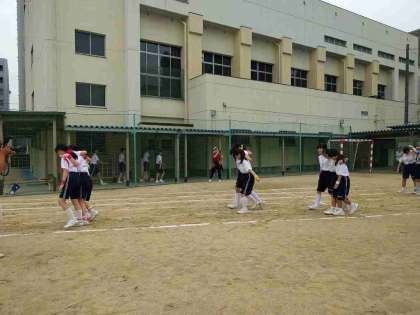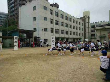 雨が降ったりやんだりする中、自分の団の選手に一生懸命声援を送っていました。特に、団別の団体種目では、さらに声が大きくなっていました。