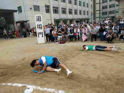 最後の競技、団対抗リレーは各団29名の選手が走り、優勝を争いました。勝負はアンカーまでもつれ、力を出し尽くしてくれました。会場全体に「オーっ!」という、うなり声のような歓声が起こり、最高潮の盛り上がりを見せました。