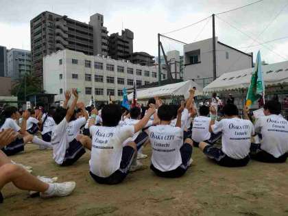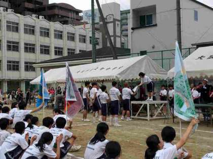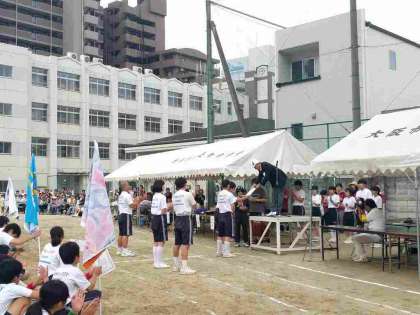 閉会式に先立って、生徒会から応援合戦に対する各賞が贈られました。ユニークなネイミングの賞で、会場から笑いが起こっていました。そして、今年の優勝が緑団と発表され、緑団からは大きな歓声が上がっていました。