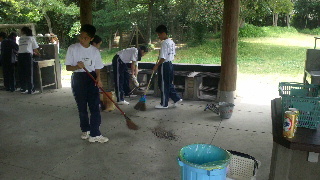 『ごちそうさま』の後は、みんなで真剣に後片付けです。「着いた時よりきれいに!」が目標です。できたかな?