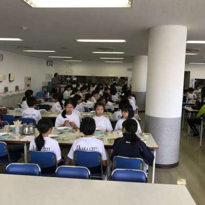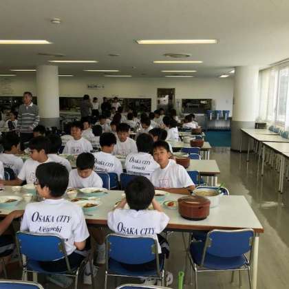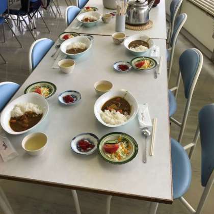 活動の後の昼食です。定番のカレーライスです。宿舎を出発する準備は整っています。次は退所式です。