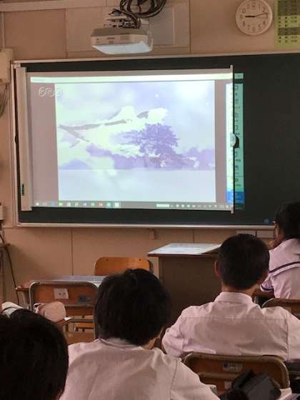 まずは、有名な「春はあけぼの〜」で始まる第一段を学習しますが、NHKの視聴覚教材を利用しました。