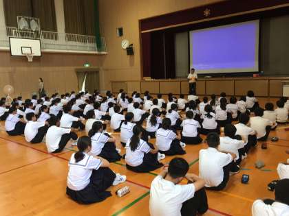 本日の5・6時間目に体育館で一泊移住の振りかえりを行いました。