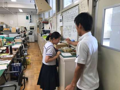 今週から、昼休みに保健委員の人が交代で夏風邪や熱中症など、これからさらに暑くなる季節に注意しておかなければならないことを放送で伝えてくれています。マイクを通じてとは言え、全校生徒・職員の皆さんが聞いているので、話す委員の緊張は半端ではありません。何度も練習してからマイクのスイッチを入れています。でも、その甲斐あって、上手できれいな放送になっていますよ。明日以降も頑張ってくださいね!