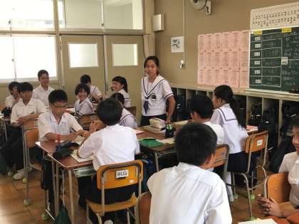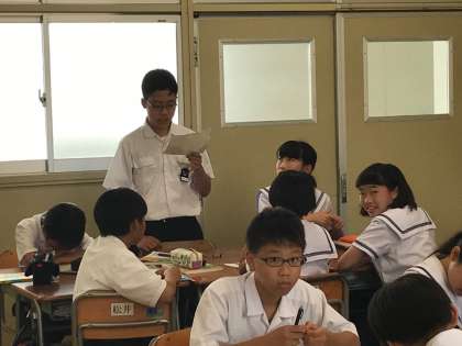 今日の1年生の国語では、ディベートを行っていました。「将来住むなら都会が良い」というテーマで、賛成派と反対派に分かれて議論するというものでした。お互いの主張の材料や根拠を班で話し合ってまとめたうえで、代表者が逆の意見の班に対して発表し合うというものです。