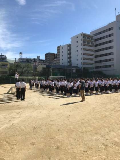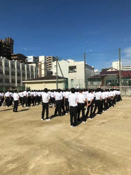 朝から気温が上がった暑い日ですが、今日も生徒集会を行いました。校長先生からは、先週後半の大雨で被害にあった地域の状況のお話から、危険を予知する力の大切さについても話されました。これだけの雨が降れば、自分の住んでいるあたりではどのようなことが起こる可能性があるのか。また、ニュースや気象情報から自分にはどれだけの危険度があるのかなど、予め知ろうとすることが自分の命を守ることになる。「今まで大丈夫やったから、今回も大丈夫やろ。」という考えが一番危険です。