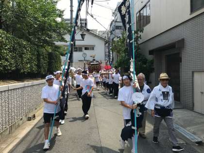 今回の参加生徒は、サッカー部、バドミントン部、野球部の有志です。うだるような暑さの中でしたが、参加した生徒たちは大きな声で「ワッショイ、ワッショイ!」の掛け声をかけてくれていました。