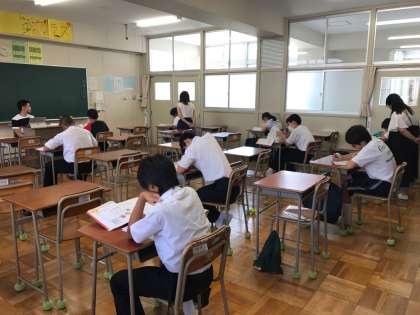 夏休みの平日初日ですが、各学年では補充学習会に取り組んでいます。希望制や指名制がありますが、取り組み方も教科を決めての講義形式や自学自習方式など様々です。でも、要は自分たちが能動的に学び、弱点を克服したり、強みを伸ばしたりすることが大切です。外は大変暑いですが、クーラーが効いた教室で学年の仲間とともに勉強を頑張っていきましょう!