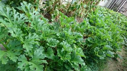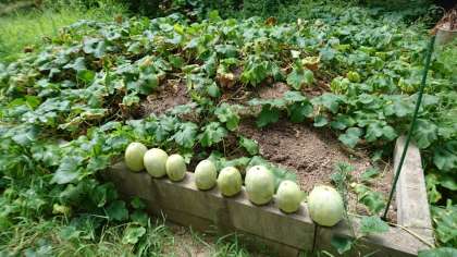 同じく今年初めて栽培したズッキーニは、青々と葉っぱが茂るばっかりで、全然実が成らず、残念な結果に終わりました。(写真下)