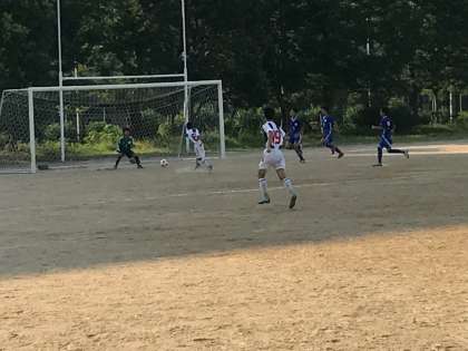 序盤は一進一退の攻防でしたが、前半に上中が1点を先制。1−0で後半に突入。後半もうまく相手の裏を取ってチャンスを作り、追加点をゲット。2−0であっさり勝利かと思われましたが、東中も粘りを見せ、1点を返されました。
