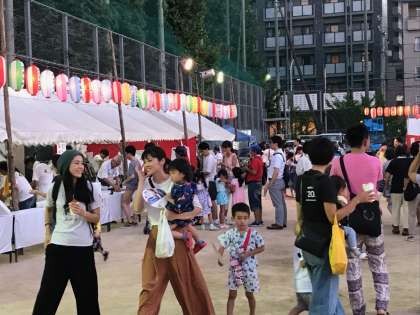 8月3日(金)の夜、瓦屋町グランドで「中央区盆おどり」が開催されました。各団体からの夜店もたくさん並び、家族連れの方々を中心に、大勢の人で賑わいました。上中生も顔を見せ、友だちと一緒に楽しそうにお店を回っていました。
