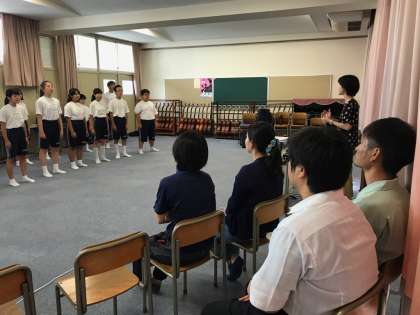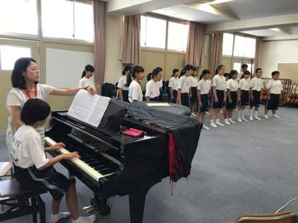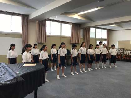 (写真は、本番前日の最終練習の様子です。職員室におられた職員の皆さんにも聞いていただきました。ピアノ伴奏は、卓球部の高橋さんが助っ人で来てくれました!)