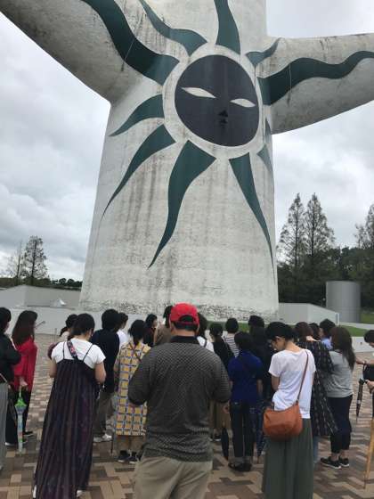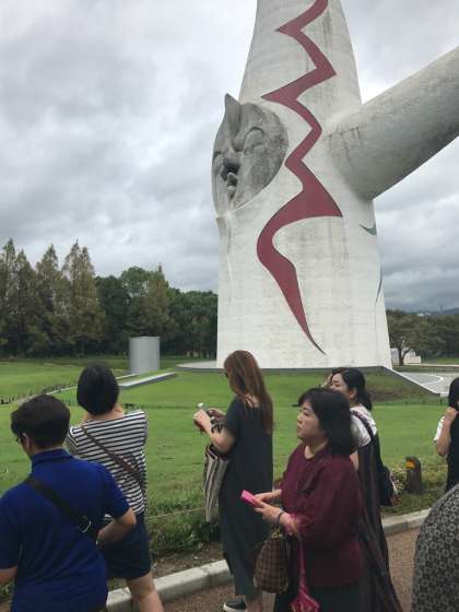 次は「太陽の塔」へ移動しました。今回は、「太陽の塔」の中に入り、ガイドさん付で見学できるという貴重なツアーです。中は撮影禁止なので皆さんにお見せすることはできませんが、懐かしがっている人、万博当時、まだ生まれてなかった人など、様々でしたが、48年前にこれだけのものを作っていたのかという感嘆の声は、参加者全員の共通の声でした。
