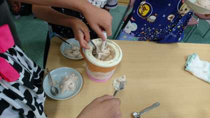 さらに、本日のメインイベント、アイスクリームを作りました。