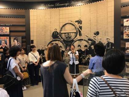 本日最後の訪問先は、アサヒビール吹田工場です。ビールの歴史や作り方、原材料のことなど、まずはビールに関する知識を学びました。