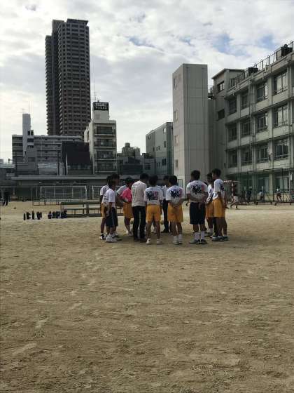 雨天の影響で1週間試合が延びてしまいましたが、大阪市秋季総体ハンドボール大会が9月15日(土)16日(日)17日(月)と3日続けて行われ、15日は大淀中に10対16で負けましたが、16日は大正中央中に29対3で勝ちました。昨年4月に創部以来、公式戦でようやく初勝利を挙げることができ、感慨深いものがありました。
