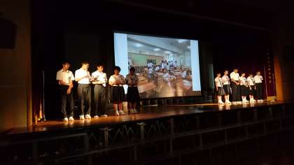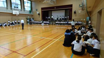 今日の1〜2限目、1年生は文化活動発表会に向けて、初めて体育館で練習しました。