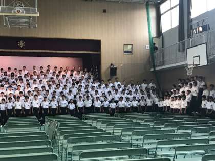 いよいよ明日に迫った文化活動発表会に向けて、本日、最終のリハーサルが行われました。全員で学校中をきれいに清掃した後、まず全員合唱の練習をしました。女子に負けず、男子の頑張りも印象に残るものとなりそうです。当日のプログラムの最後を飾る上中伝統の発表なので、期待して観に来てくださいね。