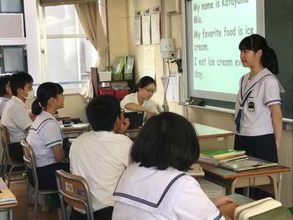 好きな食べ物や趣味のこと、所属している部活など様々な内容でした。これからの英語は、読む、聴く、書くだけでなく、話す(speaking)も重視されます。自分の考えをまとめて話せるようになれば、本当の意味で生きた英語を身につけたことになるし、よりグローバルに活躍できるようになります。楽しみながら身につけれるように、頑張っていきましょう!