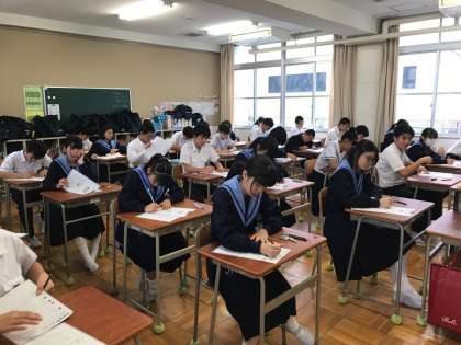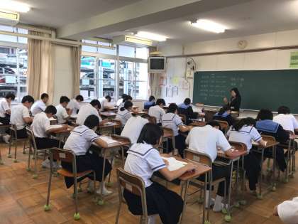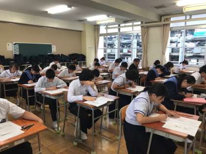 本日、「大阪市中学校3年生統一テスト」が行われています。3年生にとれば、進路の評定に関わる重要なテストです。当たり前のことですが、みんな真剣な面持ちで臨んでいました。全員が普段の実力を発揮できることを祈っています。頑張れ!