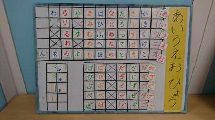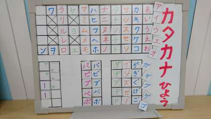 小学校から引き継いだ「ひらがな表」を、カタカナ学習用に改良しました。(写真上)