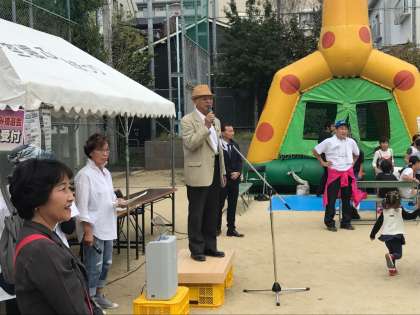 昨日の日曜日に、「空堀・桃谷ふれ愛まつり」が行われました。晴天に恵まれ、たくさんの人々が集まり、様々なイベントや出店、遊びコーナーで楽しみました。今年も上中から41名の人が参加し、お手伝いをしてくれました。過去最高のボランティア数です。