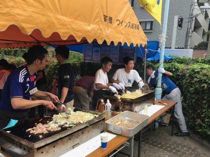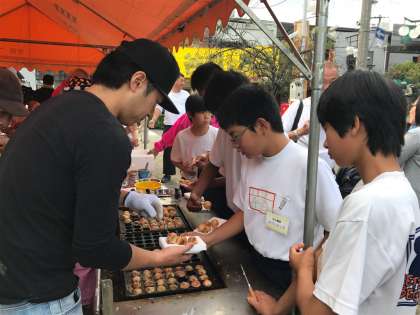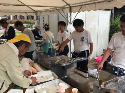 恒例の食べものコーナーでは、定番の焼きそば、たこ焼き、唐揚げを汗をかきながら黙々と作ってくれていました。また、大きな声でお客さんを集め、売り上げに大きく貢献していました。