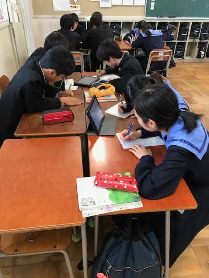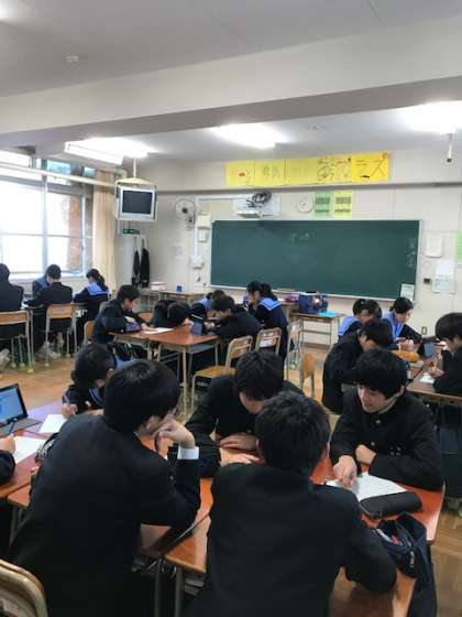 今日は、グループごとにタブレットを使いインターネット検索をしました。