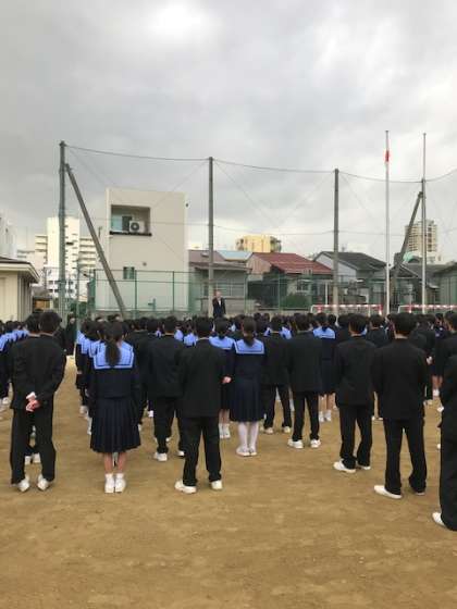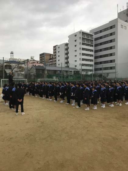今朝、急に曇ってきてパラパラと雨が落ちてきましたが、生徒集会を行いました。校長先生からは、「自利利他」というお釈迦様の教えについてのお話がありました。「相手を幸せにすることによって、自分も幸せになることができる」という考えを、地獄と極楽の話で分かり易く説明しておられました。みんなの日常生活の中でも自分さえ良かったらとか、自分さえ楽しければという考えで人を傷つけたり、嫌な思いをさせていることはありませんか。比較的ゆっくりとした時間の取れるこの時期に自分の生活面、学習面、生き方をじっくり振り返ってみましょう!