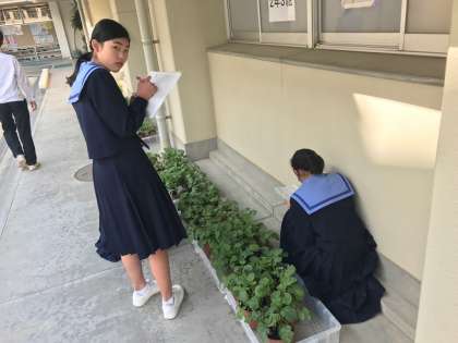 以前紹介した2年技術科で取り組んでいるラディッシュ栽培ですが、今日の昼休みに2年女子3人が観察記録をつけていました。「いつ食べれるようになるの?」と問いかけると、「来週には食べれると思います。」という返事でした。予定よりも少し成長が遅いようですが、自分たちが育てた食物を食べるのは、なかなか感慨深いものになるのではないでしょうか?楽しみですね!